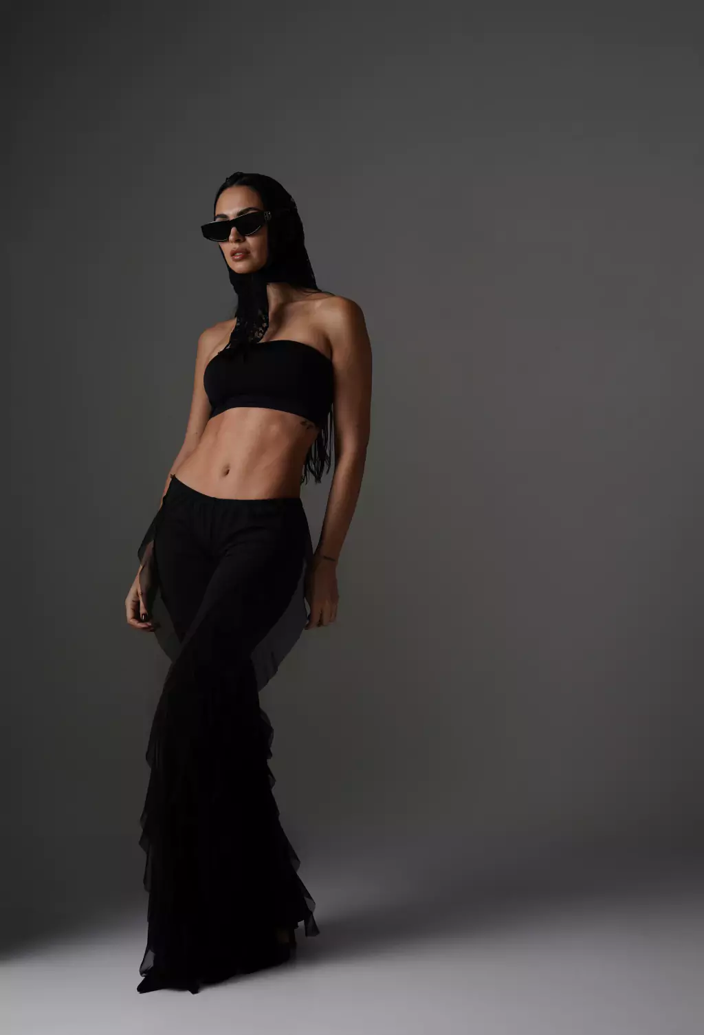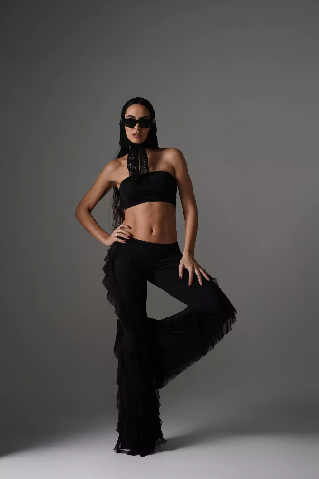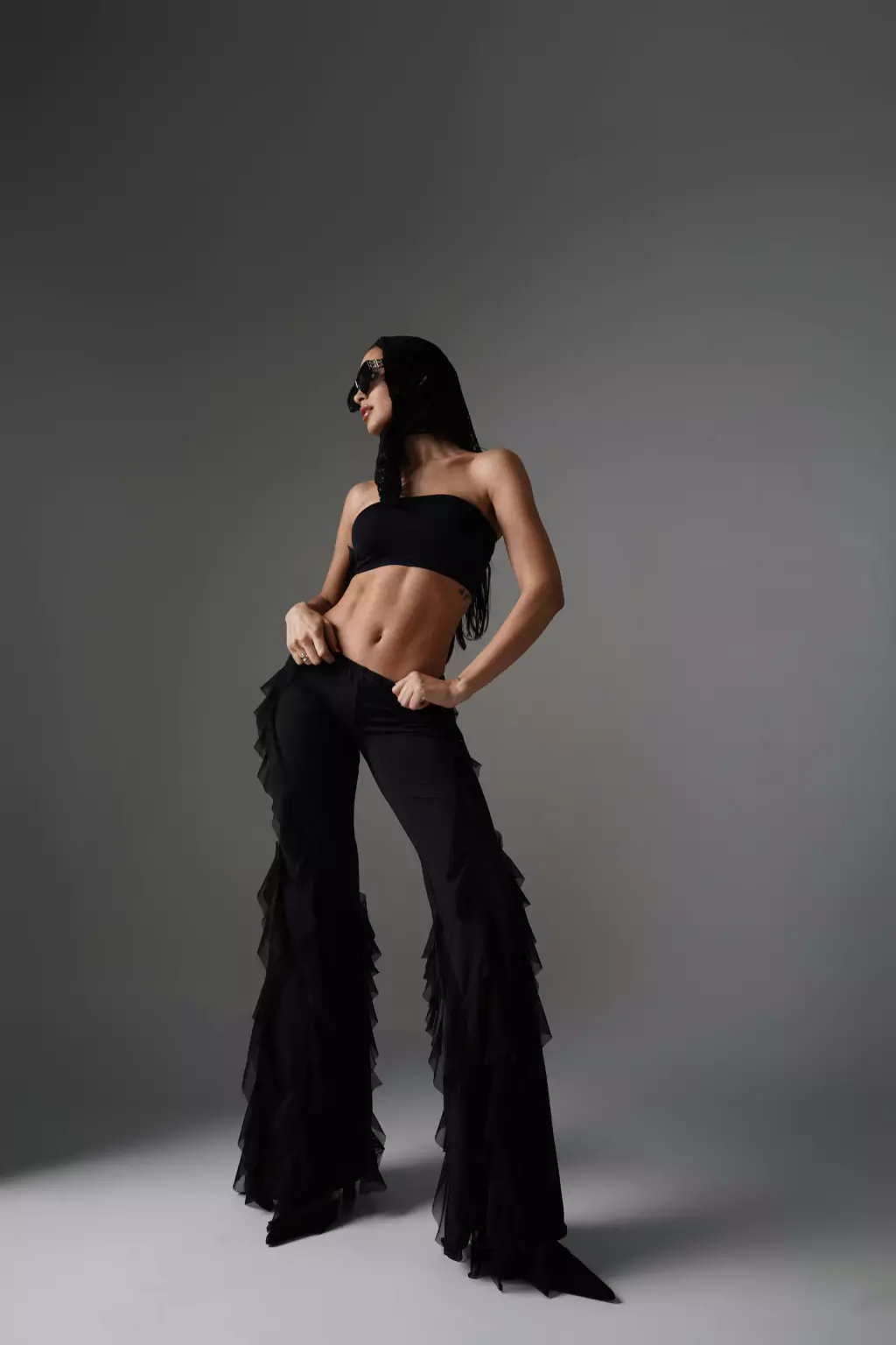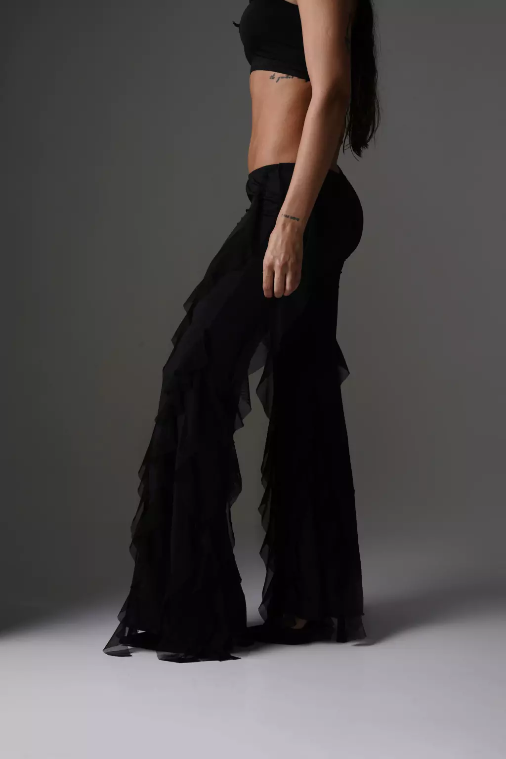- Pantalon de microfibra y volados de microtul.